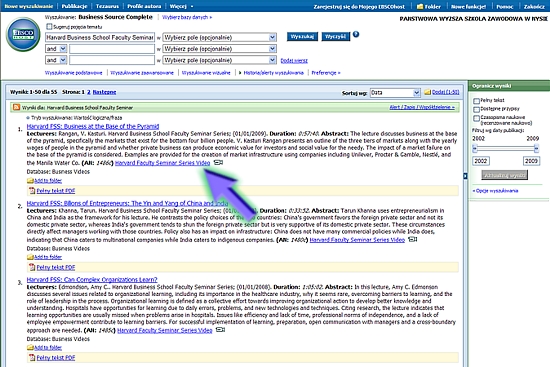Materiały w bazie Business Source Complete zostały uzupełnione o nagrania video. Filmy video to wykłady sławnych profesorów i ekspertów Harvard Business School. Większość wykładów zawiera kopię w formacie PDF.
